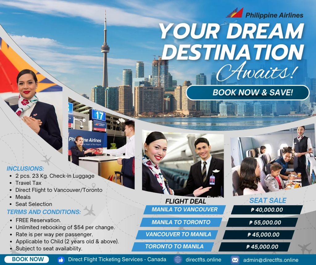 Don't miss out on our limited-time offers for direct flights to Canada. Book now and experience the Philippine Airlines difference!