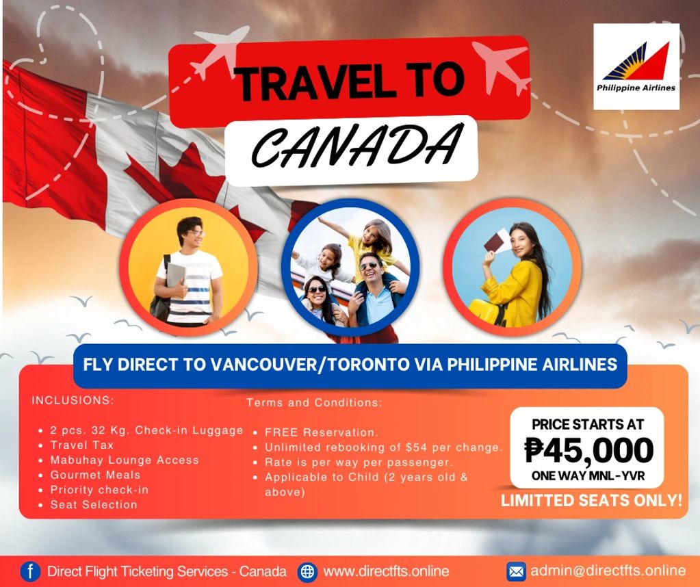 Don't miss out on our limited-time offers for direct flights to Canada. Book now and experience the Philippine Airlines difference!